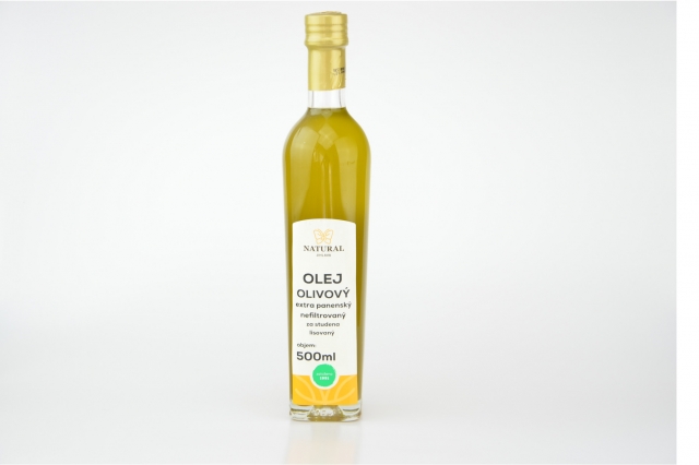 | Olivový olej extra panenský (lisovaný za studena) je olej prvotriednej kvality. Výberová kategória olivového oleje získaného priamo z olív výhradne mechanickými postupy. |